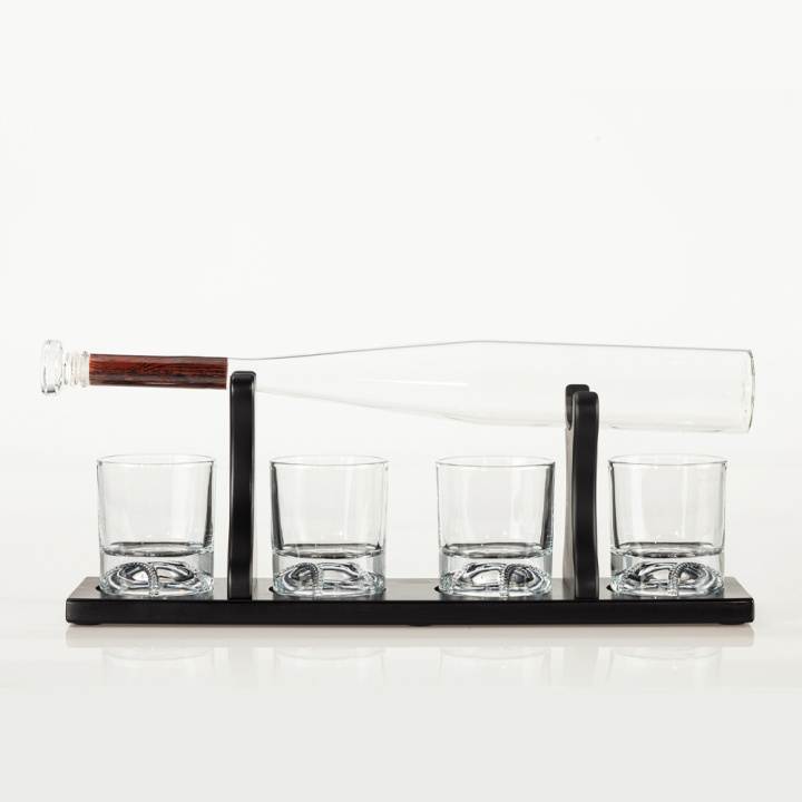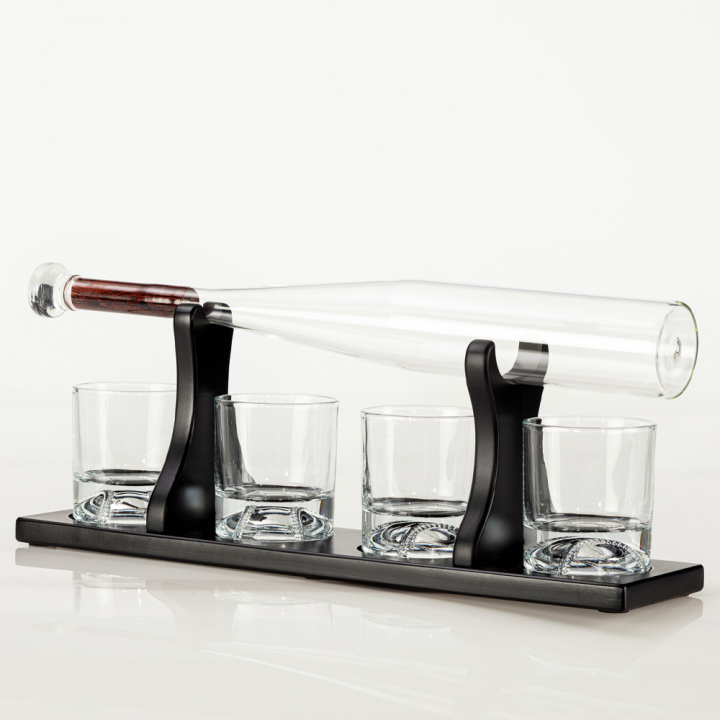 Zoek je een origineel cadeau voor een sportliefhebber of whiskydrinker? Deze honkbalknuppel karaf is een echte blikvanger voor elke bar, mancave of drankkast. De karaf is vormgegeven als een honkbalknuppel en wordt geleverd met vier bijpassende glazen, wat zorgt voor een compleet en stijlvol geheel.