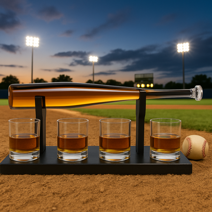 Honkbal knuppel karaf met glazen – uniek cadeau voor whiskyfans