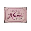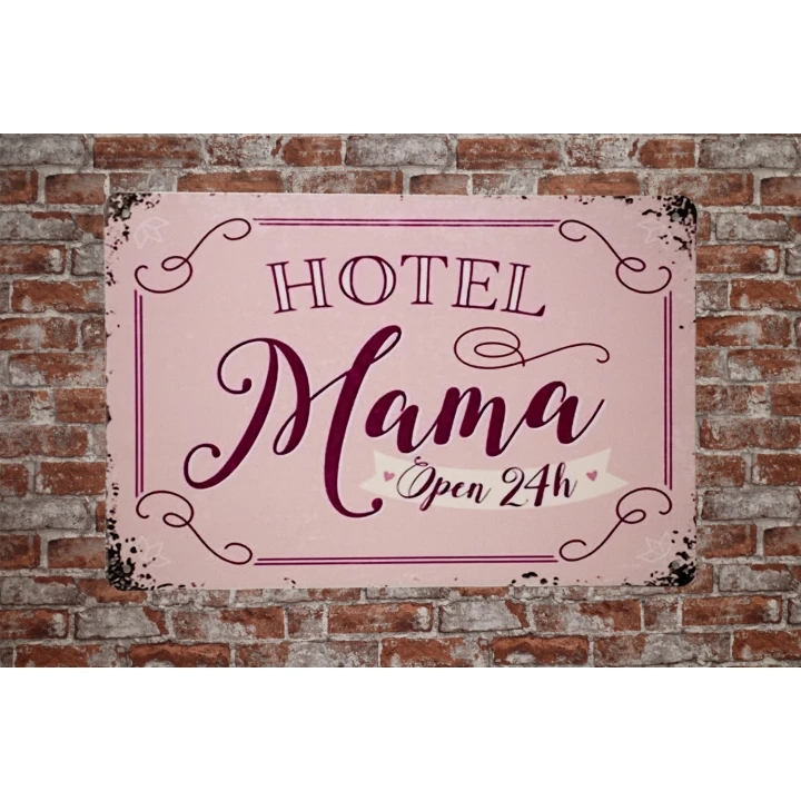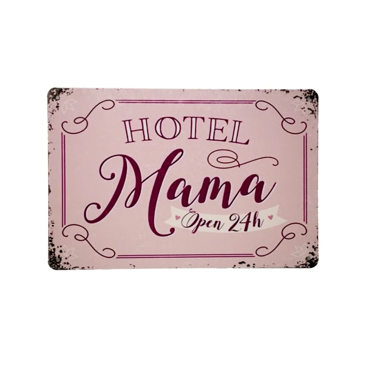 Hotel Mama Metalen borden is een bijzonder decoratiestuk / Wand decoratie voor aan uw muur. U kunt het bordje ophangen in bijvoorbeeld uw mancave, schuur, huis, bar, café, garage, werkplaats, buiten, hobby kamer of women cave.