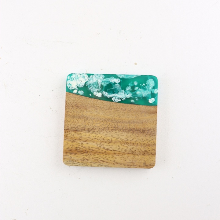 Breng stijl en natuur samen met deze prachtige houten onderzetters met blauw epoxy.