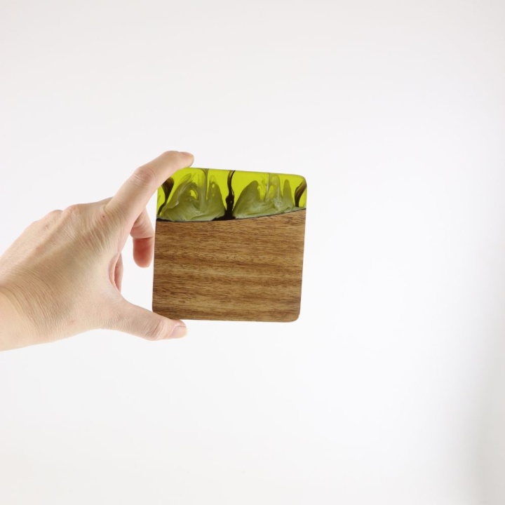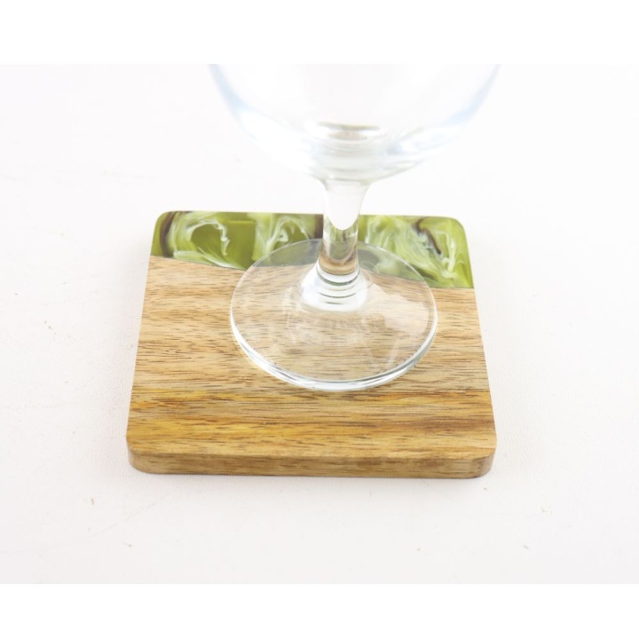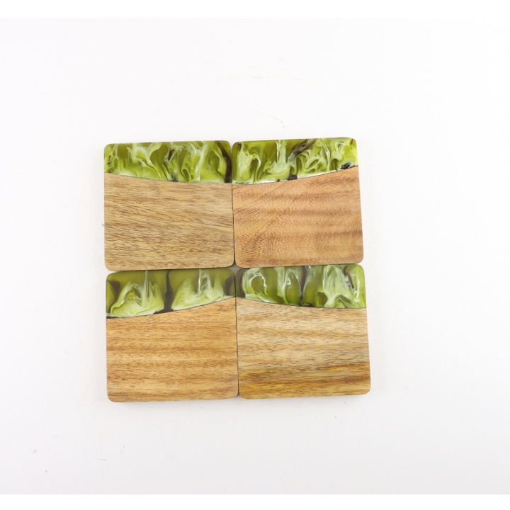 Breng stijl en natuur samen met deze prachtige houten onderzetters met groene epoxy.