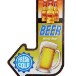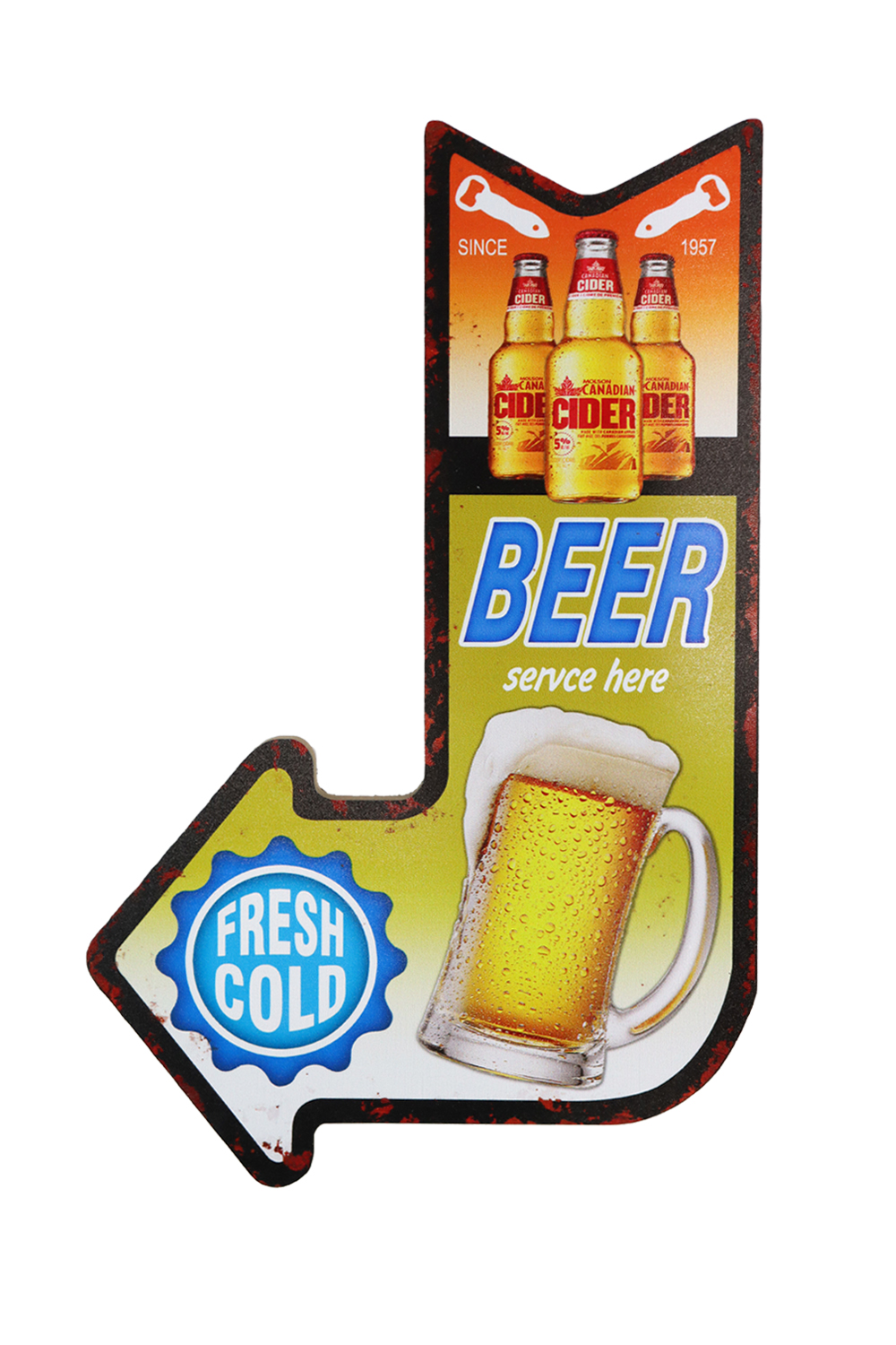 Tekstbord in de vorm van een pijl leuk om op te hangen voor een kroeg sfeer.