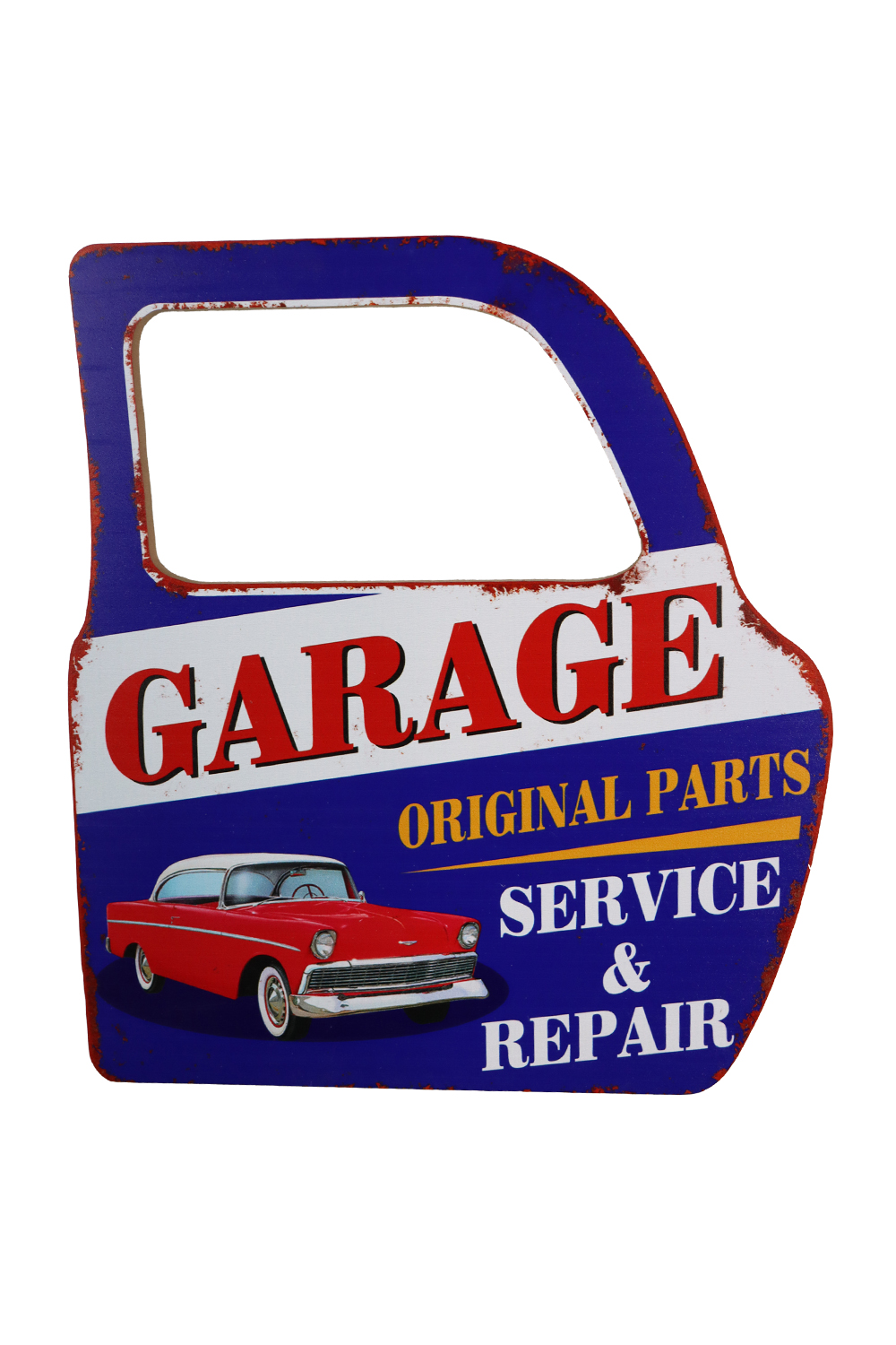 Tekstbord in de vorm van een auto deur leuk om op te hangen voor een garage sfeer.