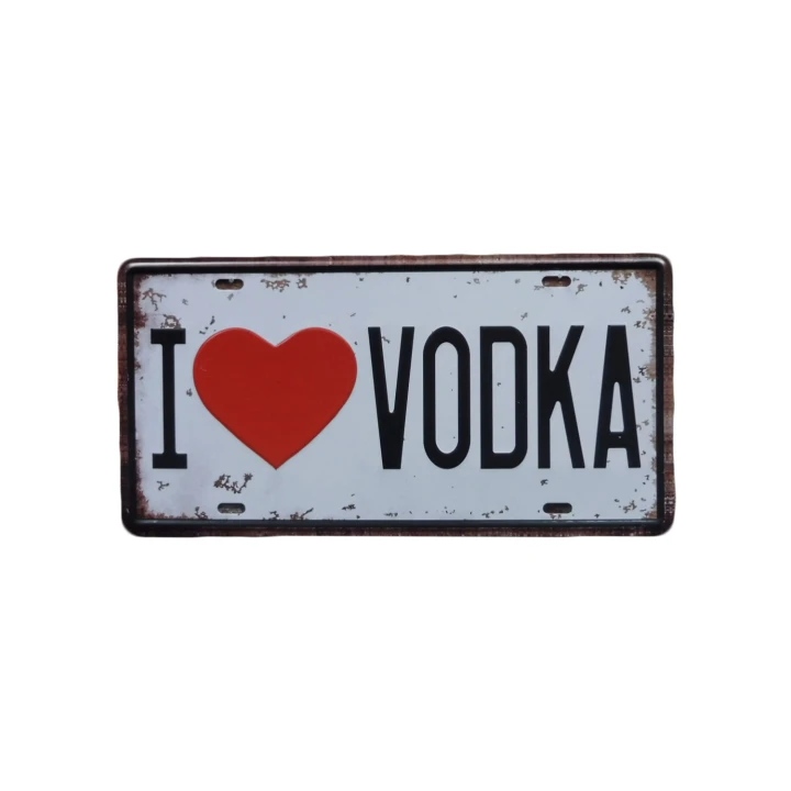 Het I Love Vodka metalen bord van 20×30 cm is de eyecatcher voor elke mancave, bar of keuken.