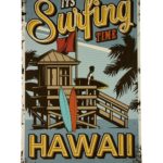 Breng een vleugje tropische vibes naar je interieur met het It’s Surfing Time metalen wandbord van Cave & Garden.
