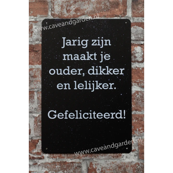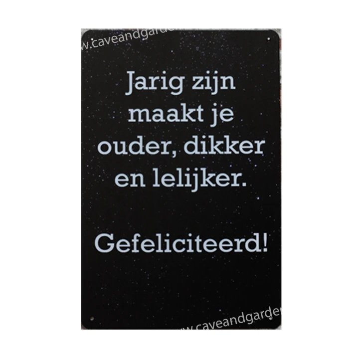 Jarig zijn Metalen borden is een bijzonder decoratiestuk / Wand decoratie voor aan uw muur. U kunt het bordje ophangen in bijvoorbeeld uw mancave, schuur, huis, bar, café, garage, werkplaats, buiten, hobby kamer of women cave.