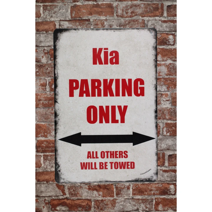 Maak je plek persoonlijk met het Kia Parking Only metalen bord van 20×30 cm.