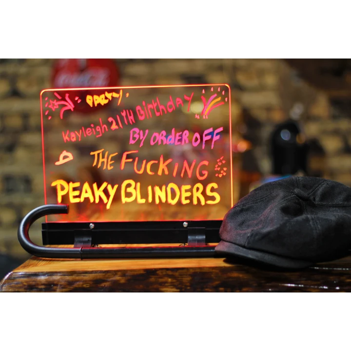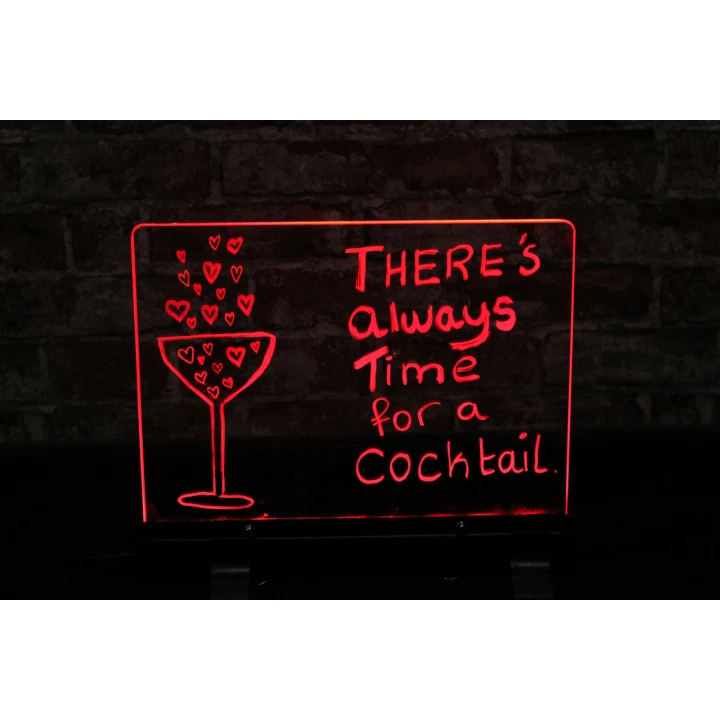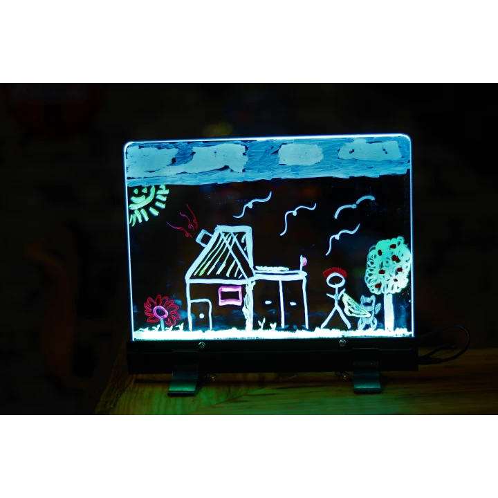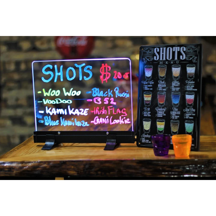 LED Schrijfbord. Dit led bord word geleverd met 6 verschillende kleuren marker stiften. De kleuren worden neon weergegeven waar door je een super leuk effect krijgt. Dit bord kan worden gebruikt voor reclame doeleinden of ter decoratie. Altijd snelle levering!
