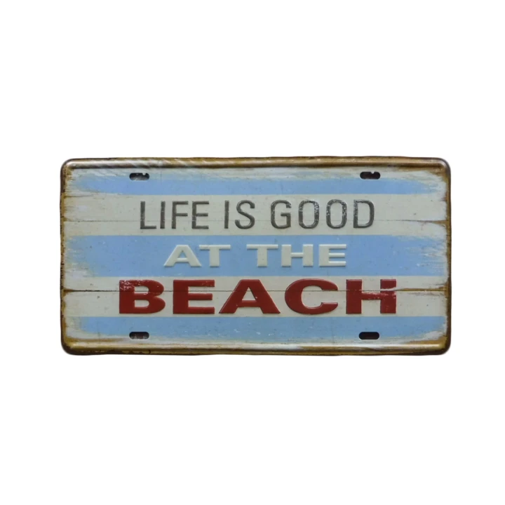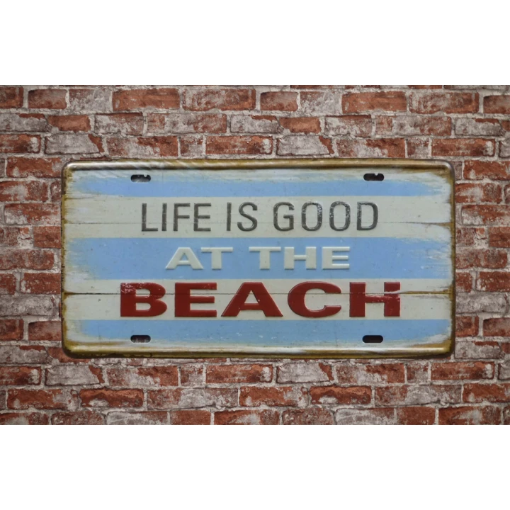 Metalen bordje met de tekst life is good at the beach , metalen borden van 15 x 30 cm groot. Wandbord van Cave & Garden. Snelle levering en altijd laag geprijsd. UV-Laag voor binnen en buiten en de hoeken zijn voorzien van gaten.