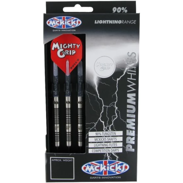 De Mckicks Premium Mighty Grip 90% Steeltip dartpijlen hebben een rechte barrel en zijn voorzien van een stevige ringgrip.
