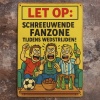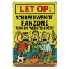 Metalen wandbord Let op: Schreeuwende Fanzone tijdens wedstrijden!”.