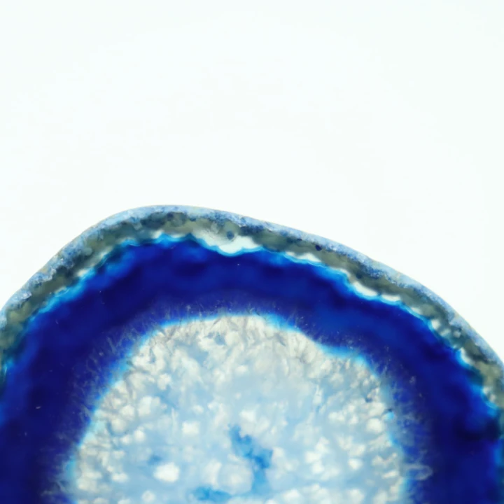 Door de levendige blauwe kleur voegt deze agaatschijf niet alleen stijl, maar ook een gevoel van rust en balans toe aan jouw interieur.