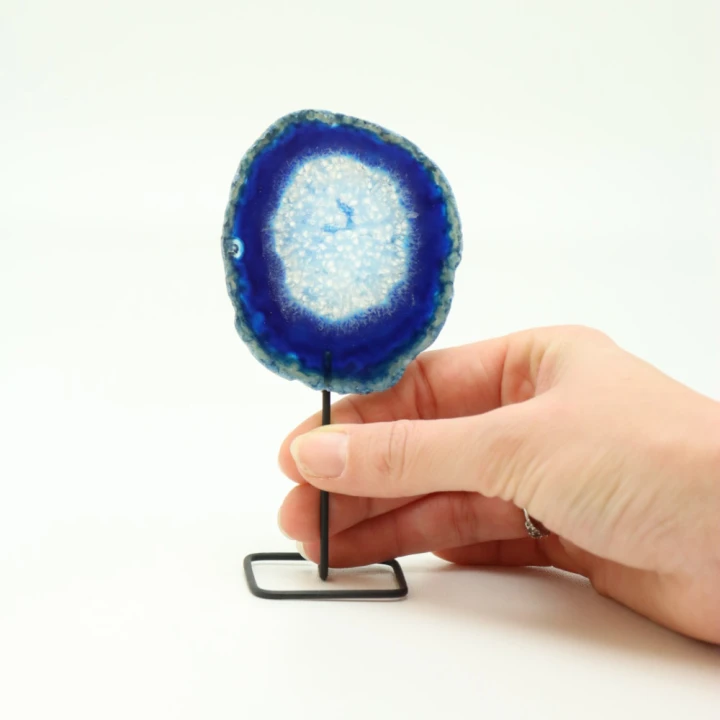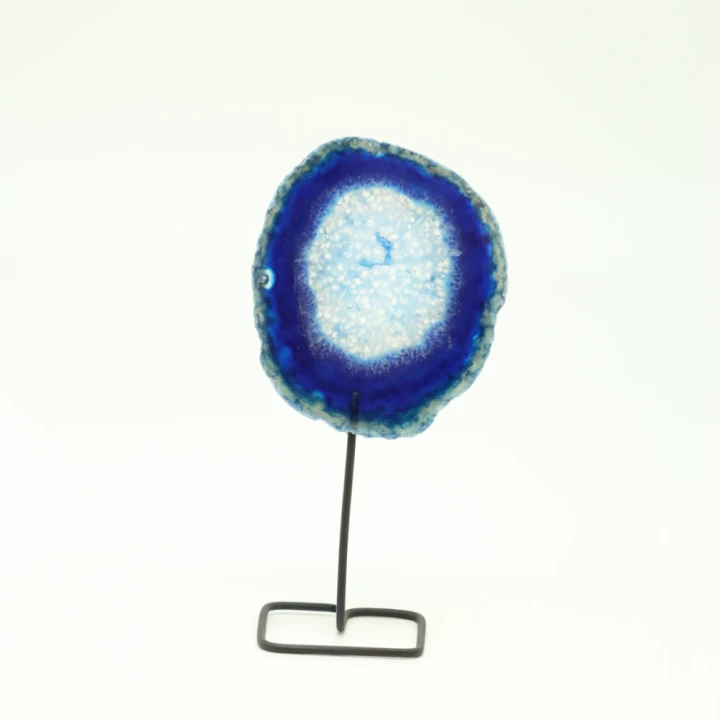 Deze Mini Agaatschijf op Standaard in een prachtige blauwe tint is een ideaal cadeau voor iedereen die houdt van natuurlijke decoratie met een bijzondere betekenis.