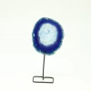Mini Agaatschijf op standaard blauw, prachtige decoratie. een echte eyecatcher