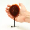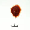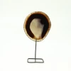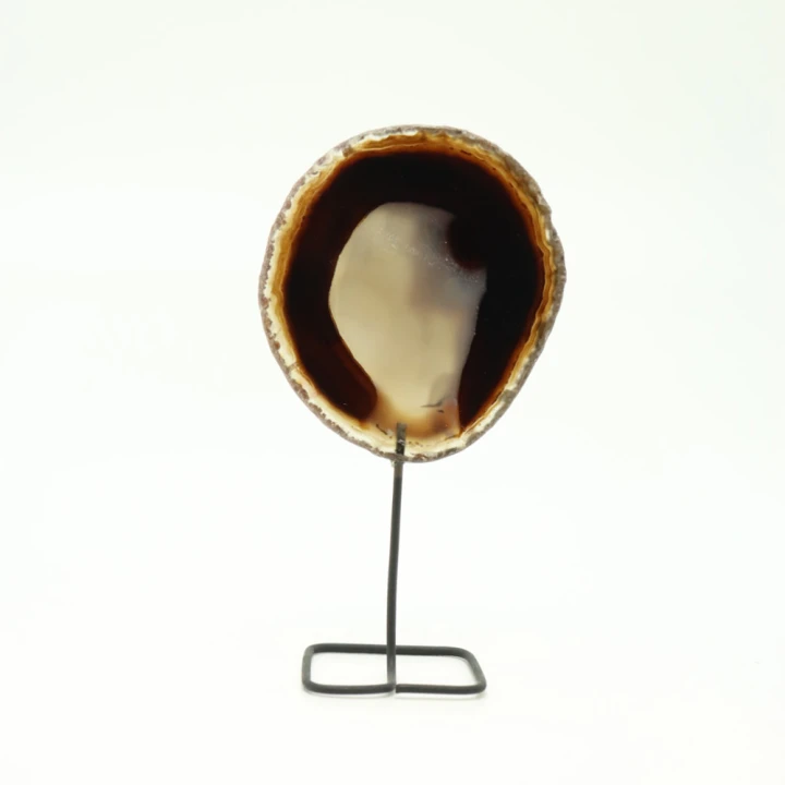 Deze unieke Mini Agaatschijf op Standaard in warme bruintinten is een prachtig decoratiestuk dat direct rust en sfeer aan jouw interieur toevoegt.