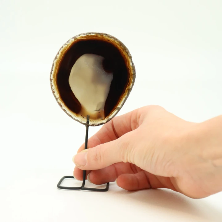 Het hebben van een agaat decoratiestuk in huis kan bijdragen aan een kalme en evenwichtige sfeer. De agaatschijf staat stevig op een standaard, waardoor hij zowel als decoratiestuk als spiritueel object een prachtige toevoeging is.