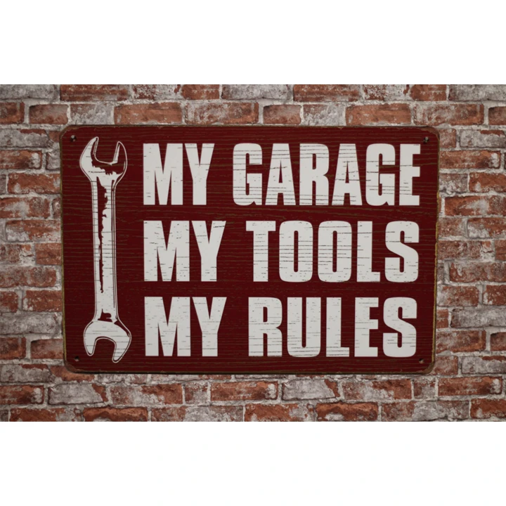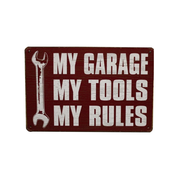 Metalen bordjes. My garage my tools. zoekt u goedkope metalen borden van hoge kwaliteit? Al onze borden worden gedrukt met UV resistente inkt en hebben een gevouwen rand. Bestel veilig en snel. Altijd laag geprijsd en snelle levering. Super cadeau voor uw geliefde! slechts €7,95