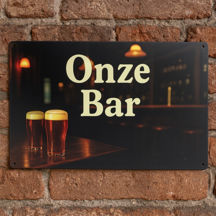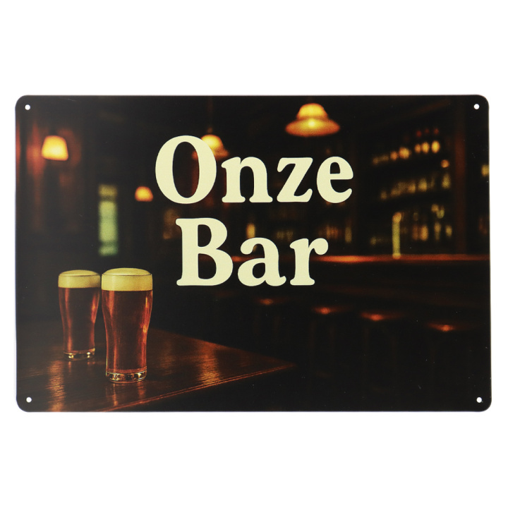 Het Onze Bar metalen bord van 20×30 cm brengt direct een gezellige kroegsfeer in huis.