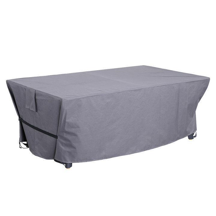 De tafel is uitgevoerd in moderne grijs- en antraciettinten (“Slate & Stone”) en past perfect in een luxe buitenruimte.