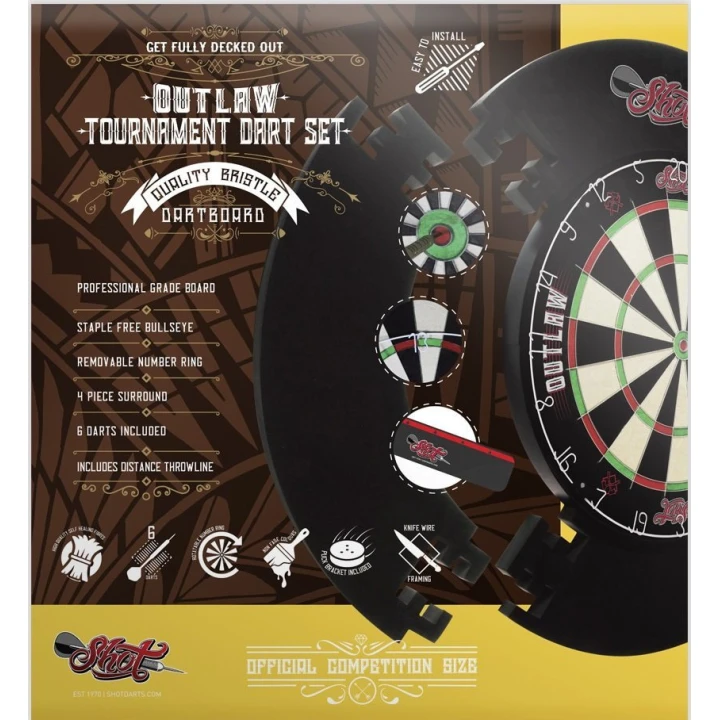Dartbord outlaw tournament. Stoere Starters Set van het merk Shot.