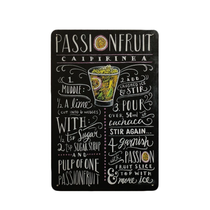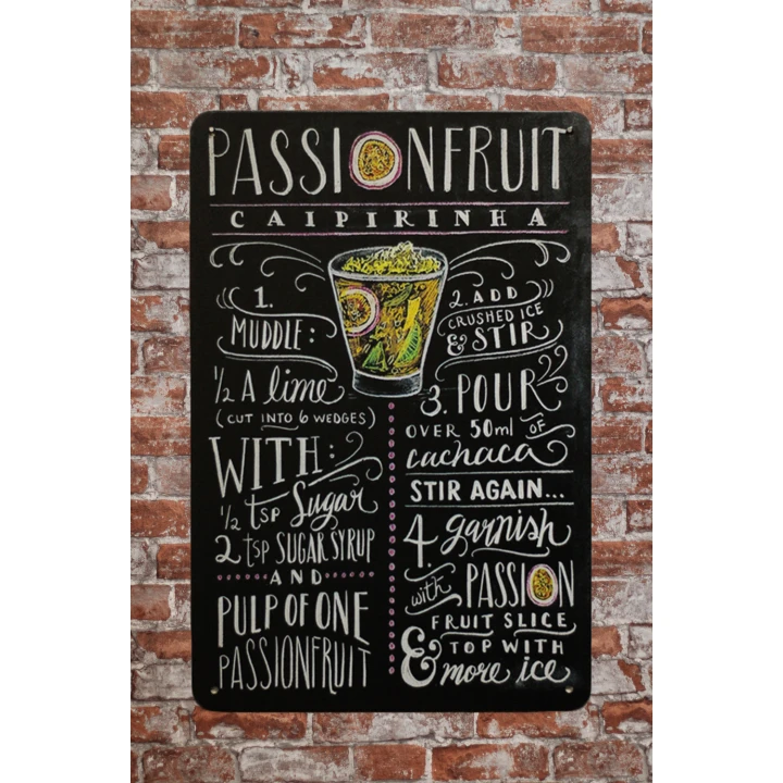 Een origineel cadeau voor iedereen die houdt van passievrucht, exotische drankjes of kleurrijke muurdecoratie. Combineer dit bordje met andere cocktail borden voor een complete barlook of geef het als verrassend geschenk aan vrienden of familie.