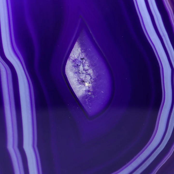De platte Agaat op standaard paars is niet alleen populair vanwege zijn helende krachten, maar ook vanwege het oogverblindende uiterlijk. De schoonheid van deze steen alleen is voor velen een reden om agaat te kopen.