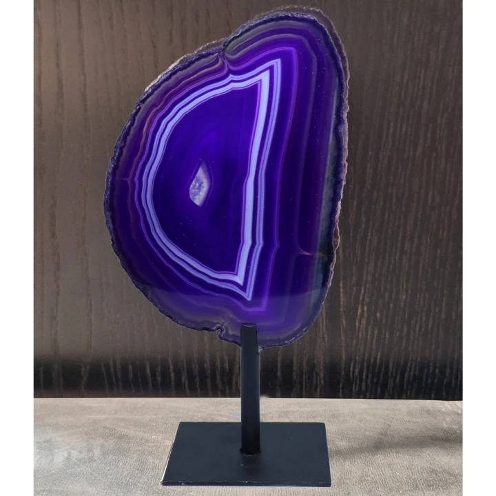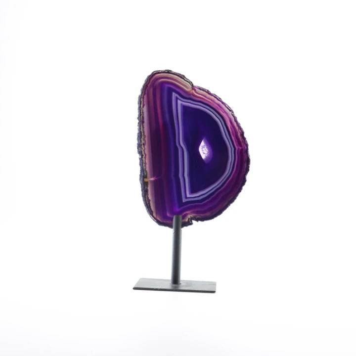 De platte Agaat op standaard paars is een prachtige decoratie stuk en past in elk interieur.
