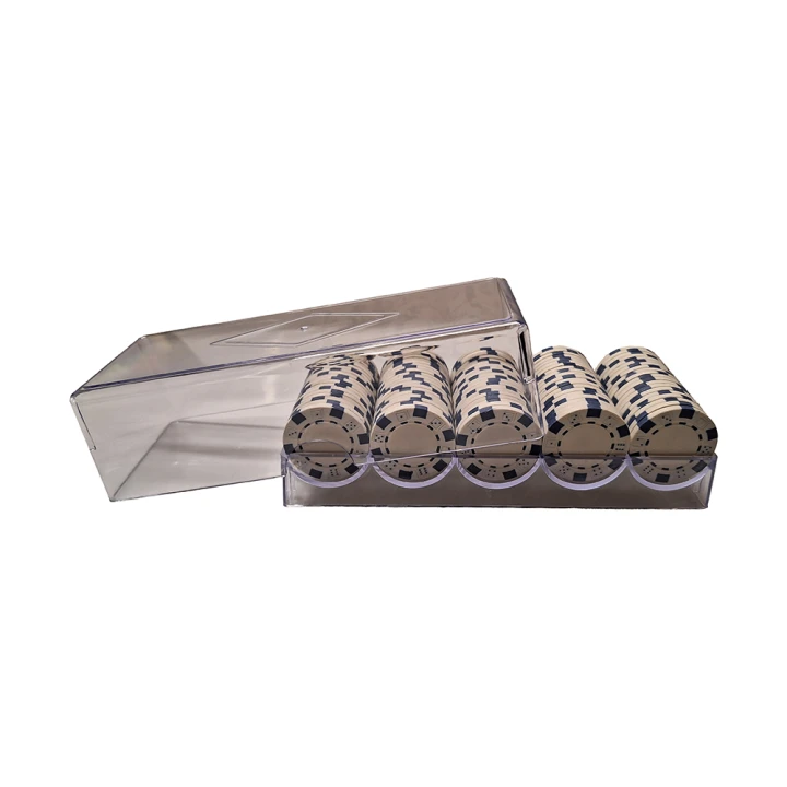 De pokerchips zijn gemaakt van klei composiet en hebben een dikte van 4 mm. Dat geeft een stevig en professioneel gevoel bij elke inzet. Dit materiaal wordt veel gebruikt bij professionele poker chips en staat bekend om zijn duurzaamheid en fijne handling. Dankzij de vaste indeling in de tray blijven de casino poker chips overzichtelijk verdeeld, wat vooral handig is bij langere speelsessies of wanneer er met meerdere spelers wordt gespeeld.