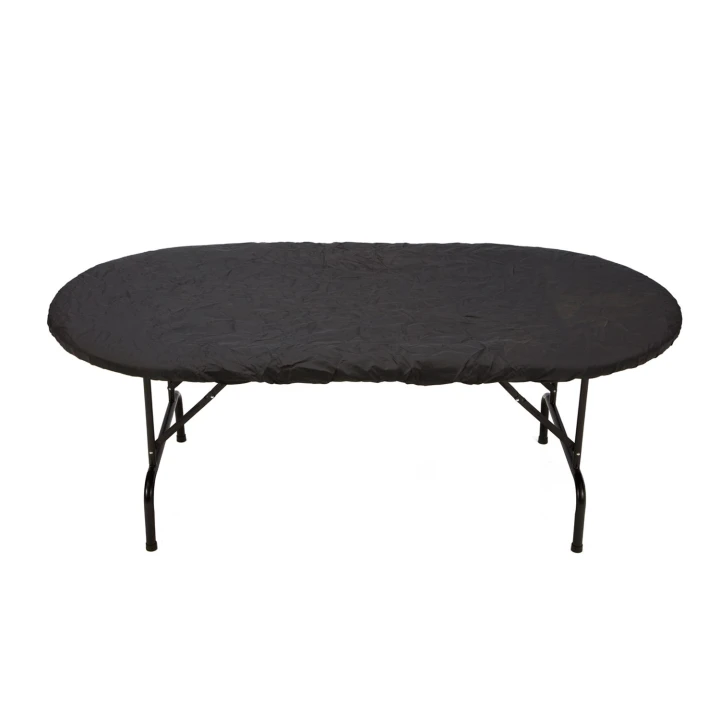 De pokertafel afdekhoes is gemaakt van zwarte nylon.