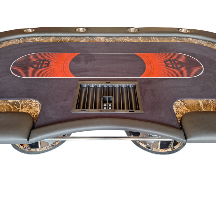 Geschikt voor 10 spelers + dealer, met marmeren poten en ingebouwde bekerhouders.