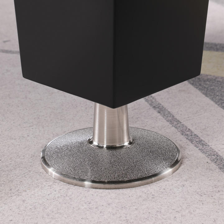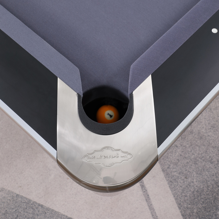 Wat deze professionele pooltafel uniek maakt, zijn de innovatieve 45 graden heavy duty pocket plates. Deze pockets zijn uitgerust met dik rubber en verzonken bouten, waardoor ballen niet beschadigen en de stabiliteit jarenlang behouden blijft. De tafel is voorzien van een 25 mm dikke 3-delige UFS leisteen (Ultra Flat Surface) die zorgt voor maximale vlakheid en precisie tijdens het spel. De massieve hardhouten banden zijn afgewerkt met een sterke formica toplaag en metalen lijst, terwijl de HDF zijkappen en metalen hoeken de tafel extra robuust maken.