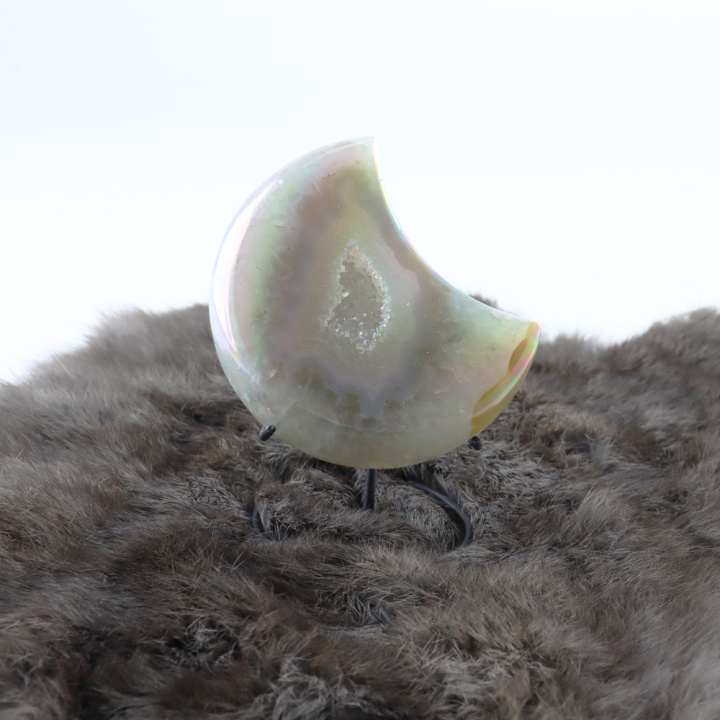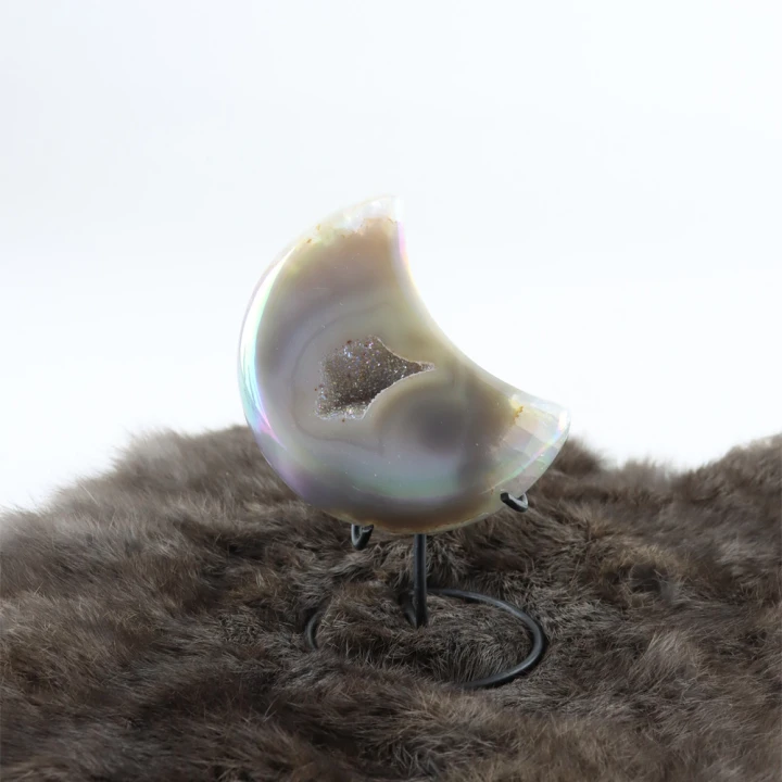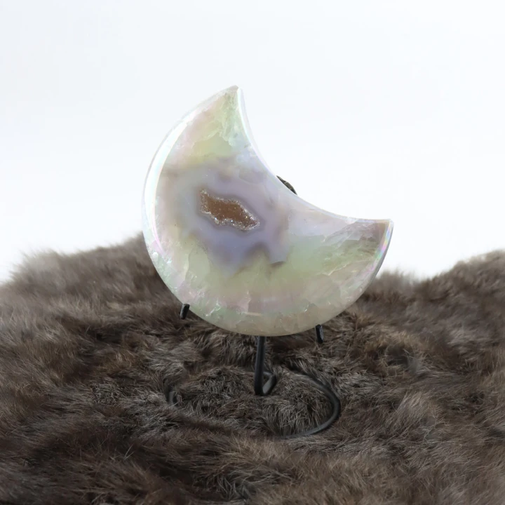 De Aura Agaat Maan op standaard wordt gezien als een krachtige energetische versterker. De combinatie van agaat en de aura-coating zorgt voor een harmonieuze balans tussen stabiliteit en spirituele groei. Hier zijn enkele van de belangrijkste spirituele eigenschappen van deze bijzondere edelsteen: