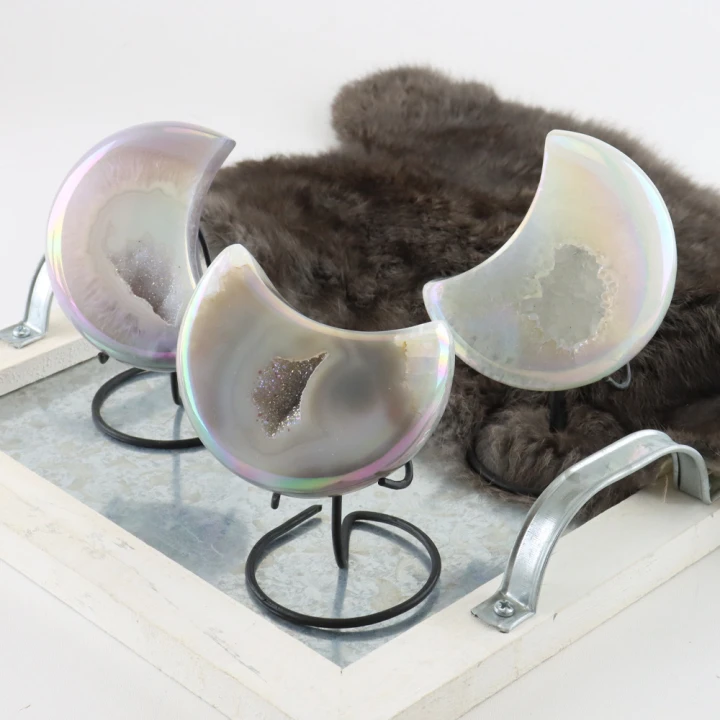 De Aura Agaat Maan op standaard is een adembenemend spiritueel decorstuk dat niet alleen esthetisch prachtig is, maar ook een diepgaande energetische werking heeft. Deze bijzondere steen combineert de aardse kracht van agaat met de magische uitstraling van aura-coating, waardoor een uniek sieraad voor in huis ontstaat. In deze uitgebreide gids duiken we in de herkomst, de betekenis en de geschiedenis van de aura agaat maan.