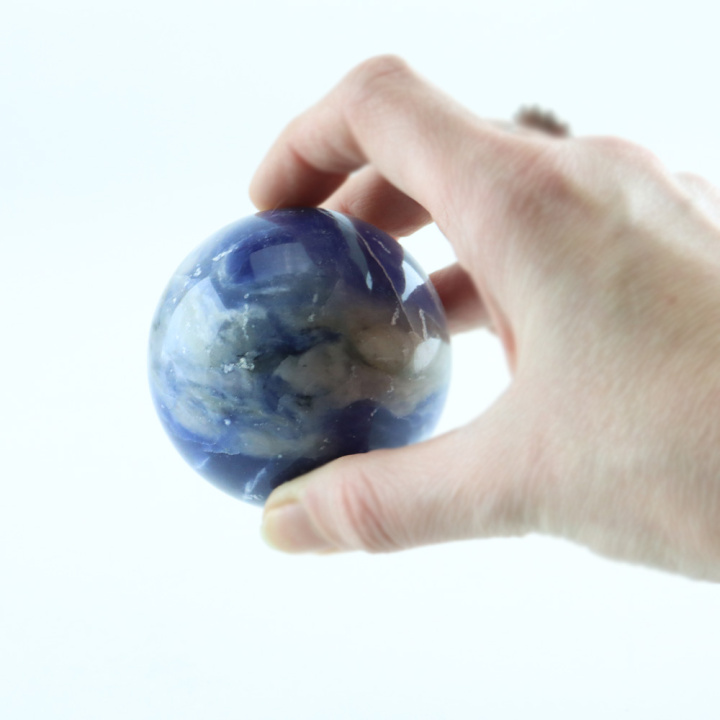 Wat sodaliet zo bijzonder maakt, is zijn diepblauwe kleur, die vaak wordt vergeleken met lapis lazuli, maar zonder de pyriet-insluitsels. De kenmerkende witte of grijze aders in sodaliet bestaan uit calciet en zorgen voor prachtige natuurlijke patronen, waardoor iedere sodaliet bol uniek is.