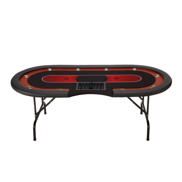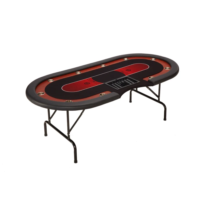 Met een stevige onderstel en geïntegreerde bekerhouders, is deze tafel ontworpen voor ultiem comfort tijdens het spelen. De tafel biedt plaats voor 9 spelers + dealer, ideaal voor grotere pokersessies. De kunstlederen rand en gepoedercoate poten zorgen voor een luxe uitstraling en de duurzaamheid die je zoekt.