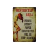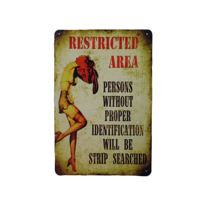 Restricted Area Metalen borden is een bijzonder decoratiestuk / Wand decoratie voor aan uw muur. U kunt het bordje ophangen in bijvoorbeeld uw mancave, schuur, huis, bar, café, garage, werkplaats, buiten, hobby kamer of women cave.
