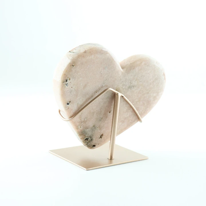 Breng een vleugje liefde en elegantie in huis met dit prachtige Roze Amethist Hart op Standaard.