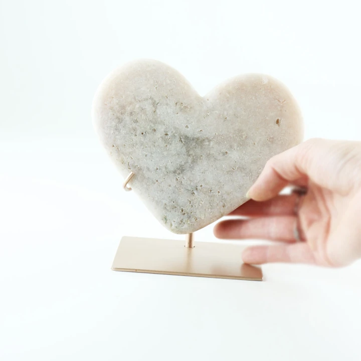 De zachte, roze amethisttinten en de hartvormige vorm maken dit een elegant accessoire dat direct warmte en liefde toevoegt aan elke ruimte.