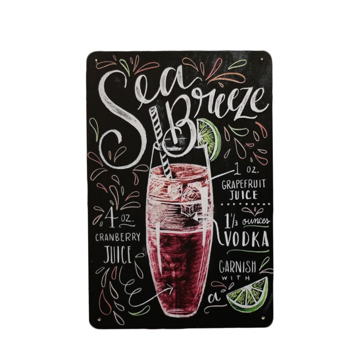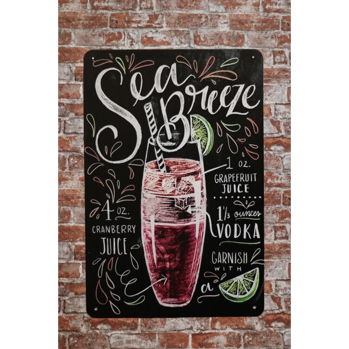 Breng de verfrissende sfeer van een tropisch strand naar je eigen bar, keuken of woonkamer met dit stijlvolle Sea Breeze metalen bord van 20 x 30 cm. De zomerse cocktailafbeelding maakt dit bord een echte eyecatcher, perfect als muurdecoratie voor elke cocktail-liefhebber of strandliefhebber. Of je nu een mancave, women cave of buitenbar hebt: dit metalen bord past overal.