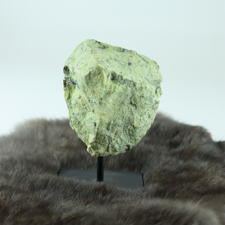 Deze Serpentijn op standaard is een prachtig decoratiestuk met een unieke uitstraling. De steen heeft prachtige groene tinten, variërend van lichtgroen tot diep olijfgroen, en wordt al eeuwenlang gewaardeerd vanwege zijn spirituele en helende eigenschappen. Met zijn zachte, organische uitstraling is serpentijn een bijzondere toevoeging aan elk interieur.