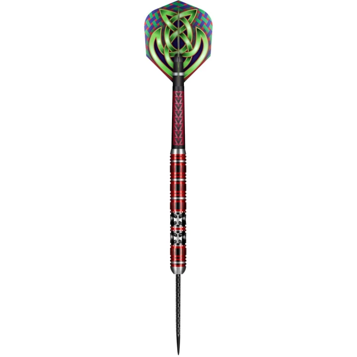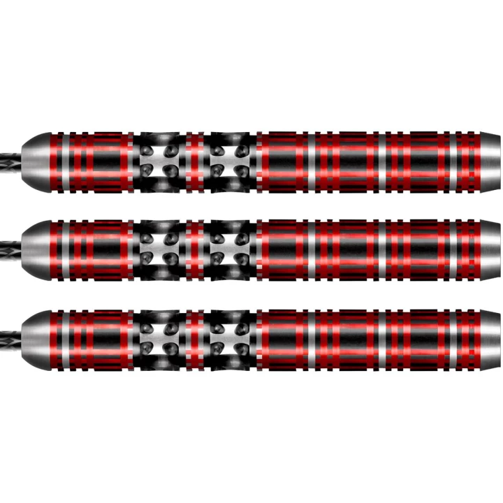 Deze pijlrechte barrel heeft een stevige greep – omringd met woest rood en zwart bewerkt titanium. Deze insnijdingen, plus een gedefinieerde dubbelgerande zwarte titanium Rebellion greep laten je vingers langs de dart scannen om je perfecte grip te vinden. Leid de aanval aan de oche – het is jouw slagveld.