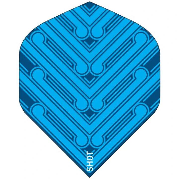 De Shot Manu Blue std Flight. Deze mooie flight is van kleur blauw met een tribal design.