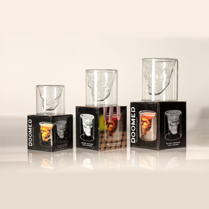 Het robuuste design past perfect in elke bar, mancave of feestsetting. Ideaal voor sterke drank, mixdrankjes of zelfs creatieve dessertpresentaties. De schedelvorm aan de binnenzijde geeft het glas een unieke uitstraling die je niet snel ergens anders tegenkomt.