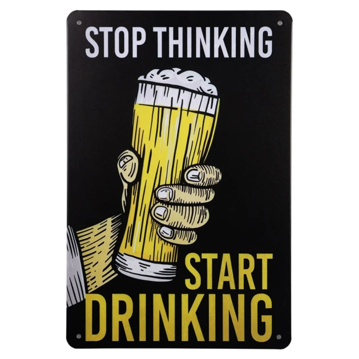 Geef je ruimte een opvallende en speelse uitstraling met het Stop Thinking metalen bord. Dit decoratieve metalen wandbord is ideaal als muurdecoratie en past perfect in je mancave, bar, café, werkplaats, schuur, keuken of zelfs buiten op het terras. Het bord van 20 x 30 cm is een echte eyecatcher die direct sfeer toevoegt en zorgt voor een originele twist in elk interieur.