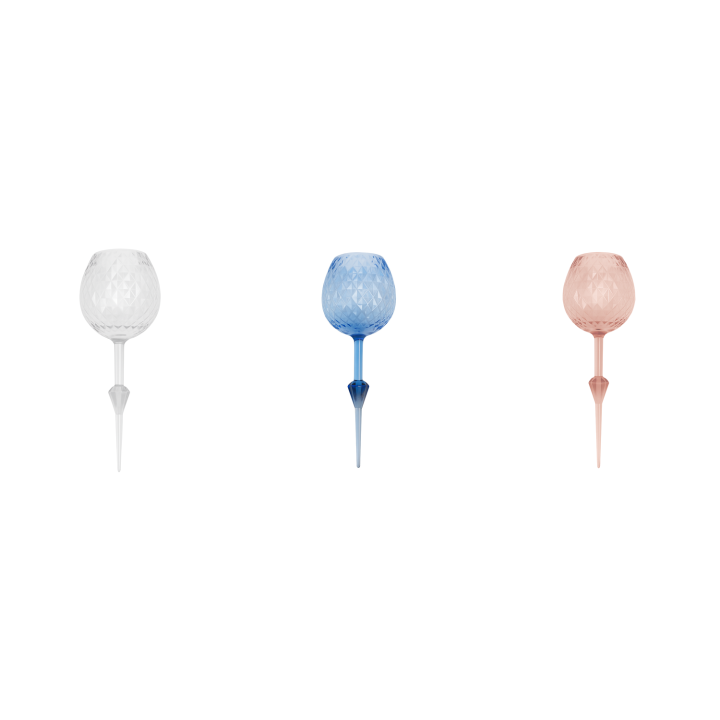 Het glas word geleverd in de kleur blauw, paars of transparant.