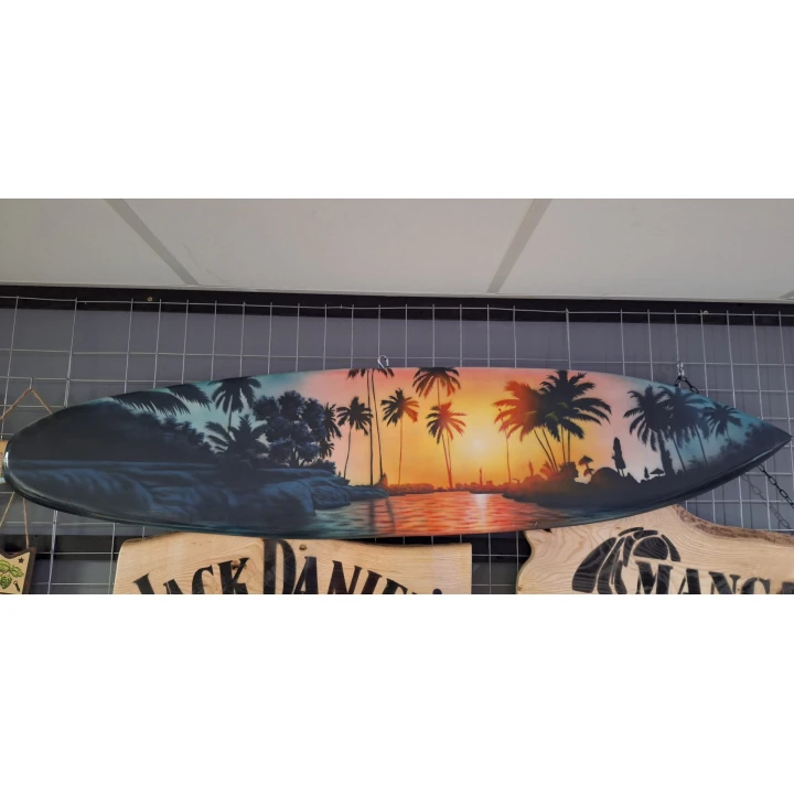 Super leuke decorative Surf plank 1.5M Palmbomen. Deze surf plank is 1,5 meter en met de hand gemaakt.