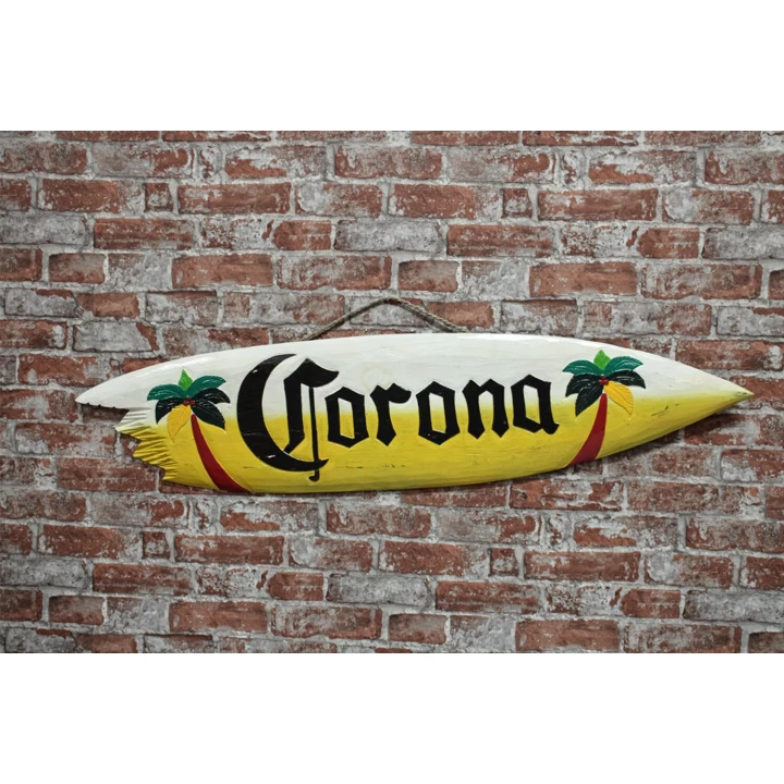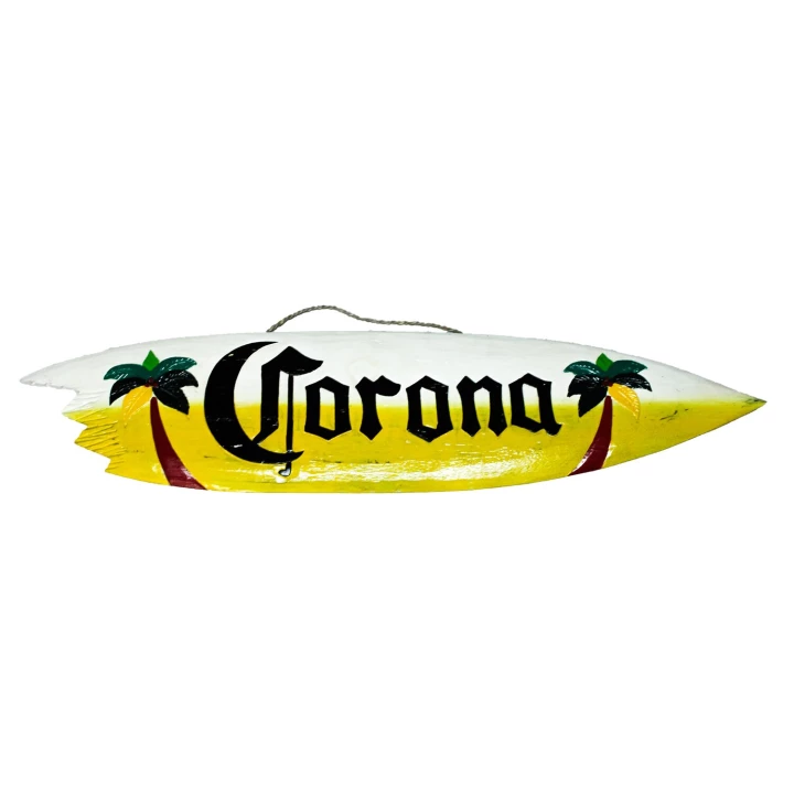 Leuk decoratie surfplank met tekst corona. 50 cm lang en voor binnen en buiten gebruik. Super leuk voor in uw eigen mancave, kroeg, bar , cafe of huis. Hand geschilderd. Ook heel leuk om cadeau te doen aan vrienden of familie!