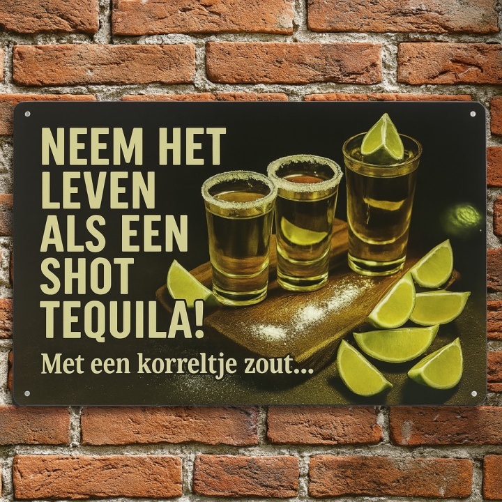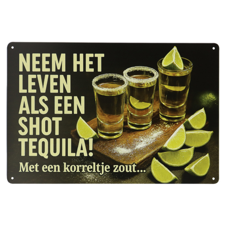 Tequila metalen bord van 20×30 cm met humoristische tekst.