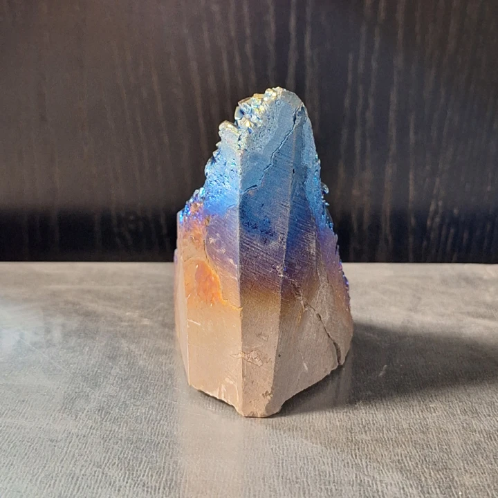 Titanium aura kwarts zorgt voor een sterke basis samen met een vrolijke, ontspannen houding. Het geeft mentale en fysieke kracht en energie. Het vergroot de concentratie, maakt doelgericht en vergroot het vertrouwen in je eigen capaciteiten.