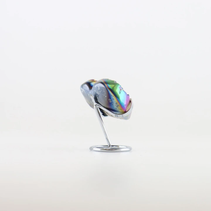 Hierdoor ontstaan een geweldig mooie parelmoerachtige blauwe kleur met regenboog effecten. Ondanks dat deze steen kunstmatig gevormd wordt, doet deze qua werking zeker niet onder van andere stenen.